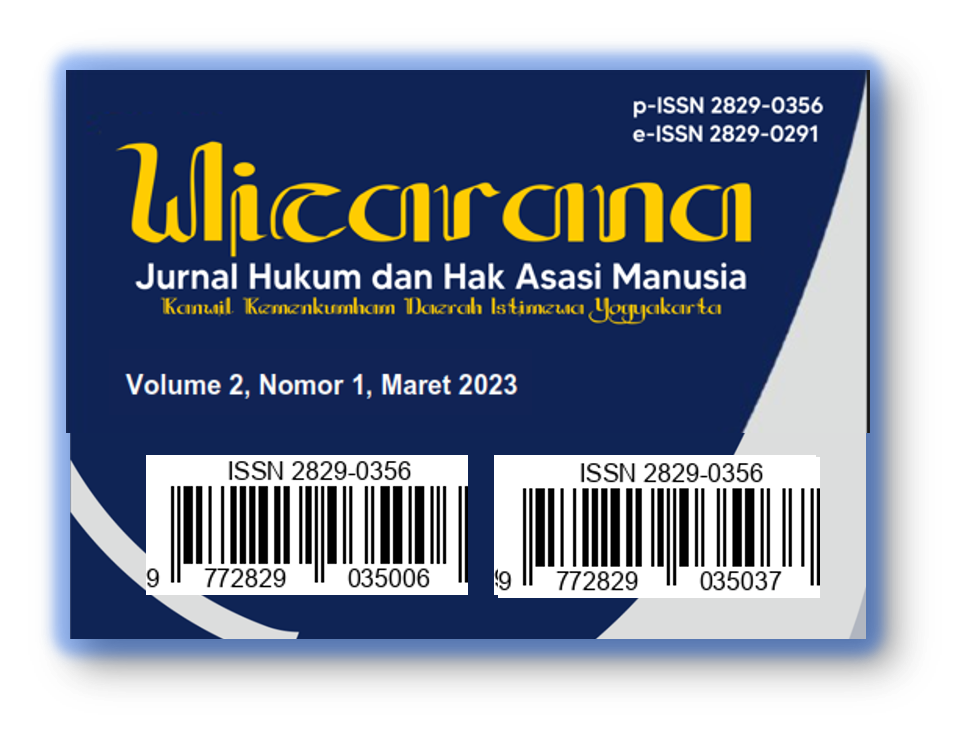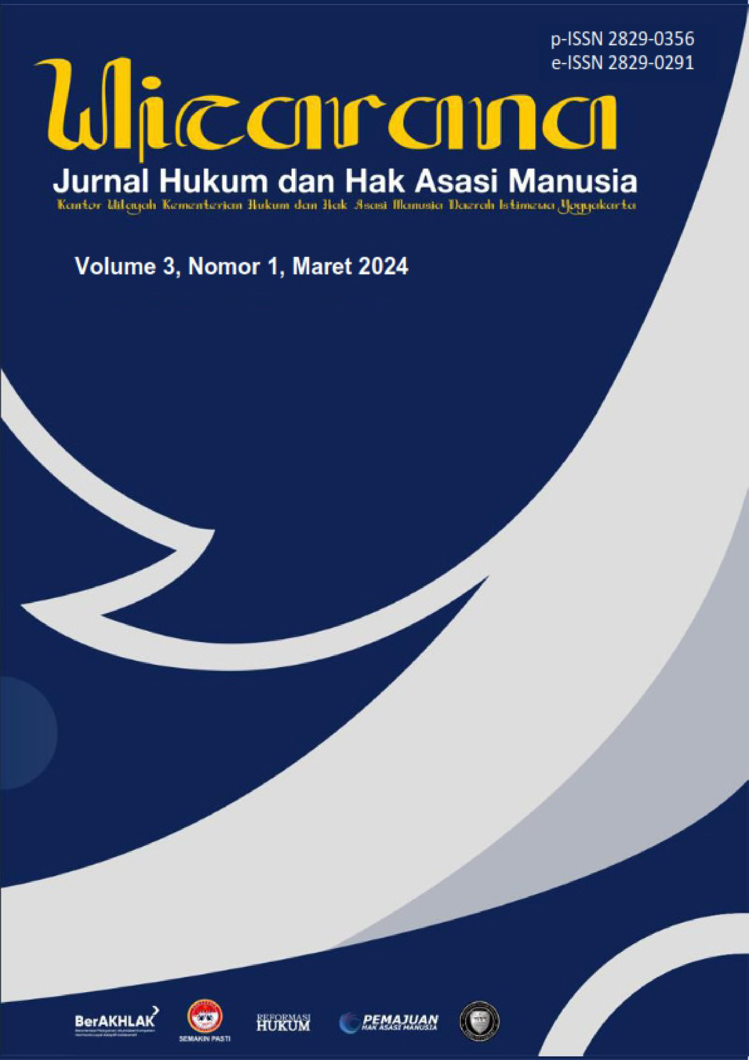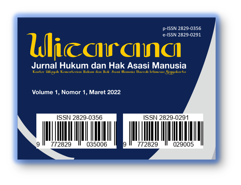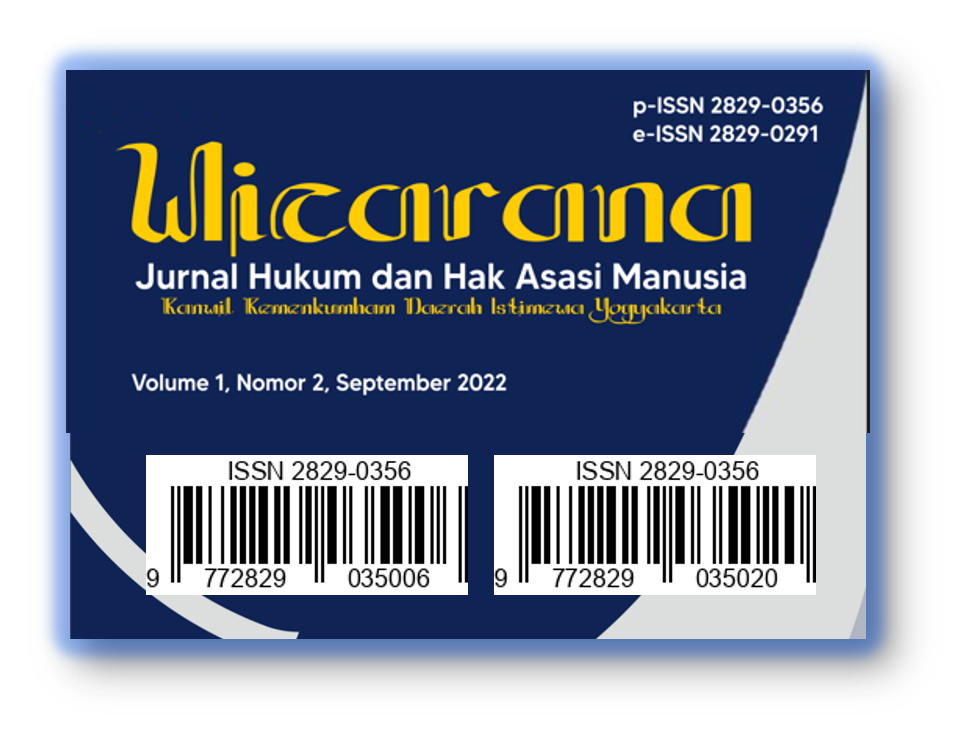 Vol 1 No 2 (2022)Dalam edisi ini, Volume. 1 No. 2 (2022): September, semua artikel yang diterbitkan ditulis atau ditulis bersama oleh individu-individu dari Kementerian Hukum dan HAM RI (Indonesia), Kantor Wilayah Kementerian Hukum dan Hak Asasi Manusia Daerah Istimewa Yogyakarta (Indonesia), Universitas Islam Negeri Sunan Kalijaga (Indonesia).